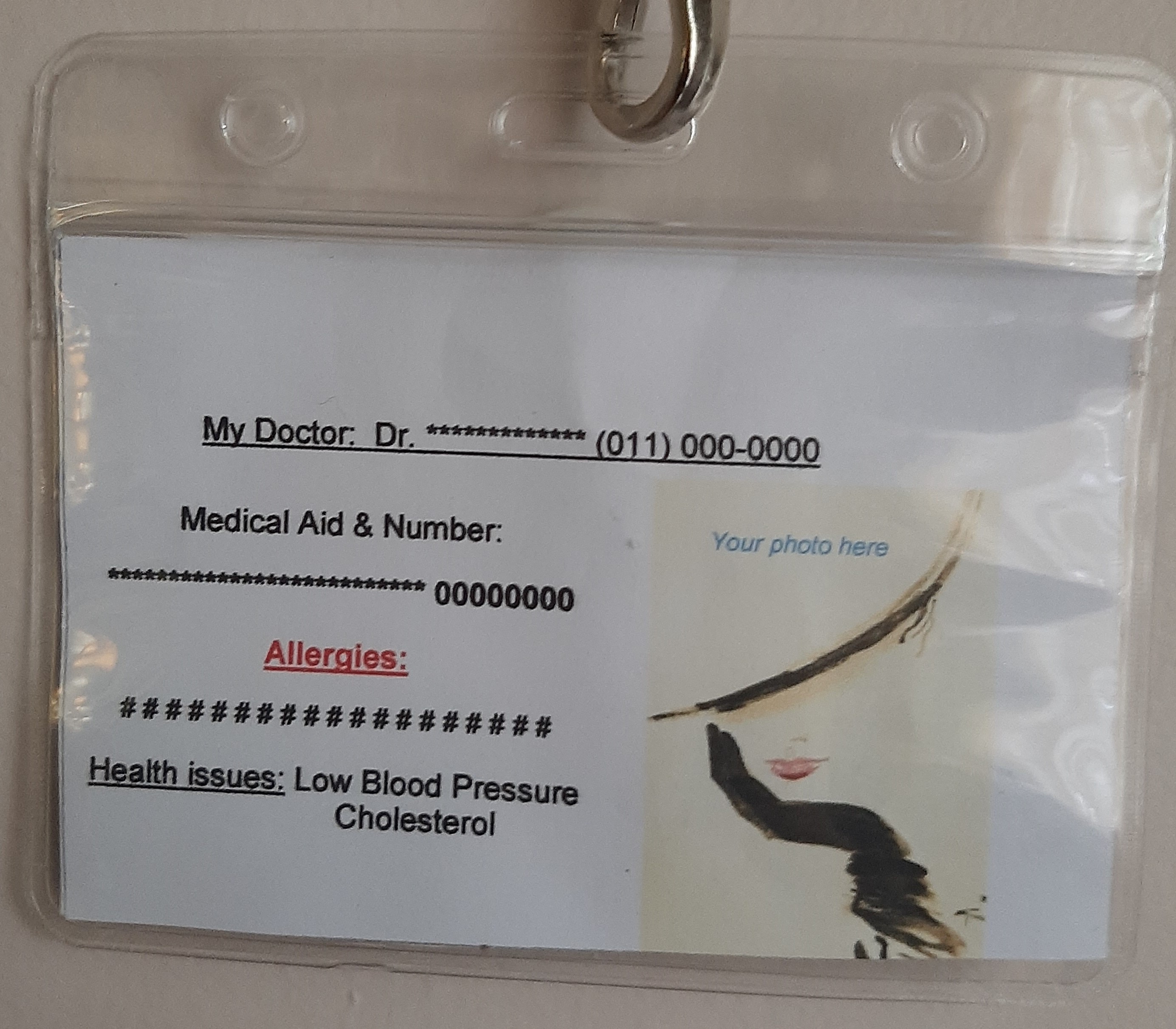 - Medical & other Info sheet (e.g. Attorney, Doctor/s, Employer)